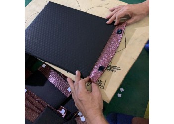 采用黑色導電膜與紅色防靜電氣泡膜復合材料生產
