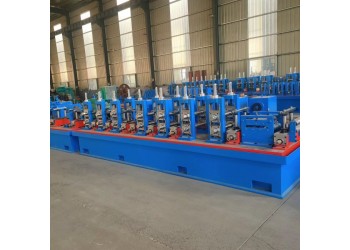 以帶鋼為原料,經開卷、成型、高頻焊接、解決焊瘤、定徑、校直、切斷等一系列制管工序制造出圓鋼管或各樣式一行鋼管的成套設備。采用輥式成型將帶鋼冷彎加工成圓坯,通過高頻感應加熱將焊縫擠壓形成圓管,在經過定徑加工生產出各樣式標準規格的圓管、方矩形管。